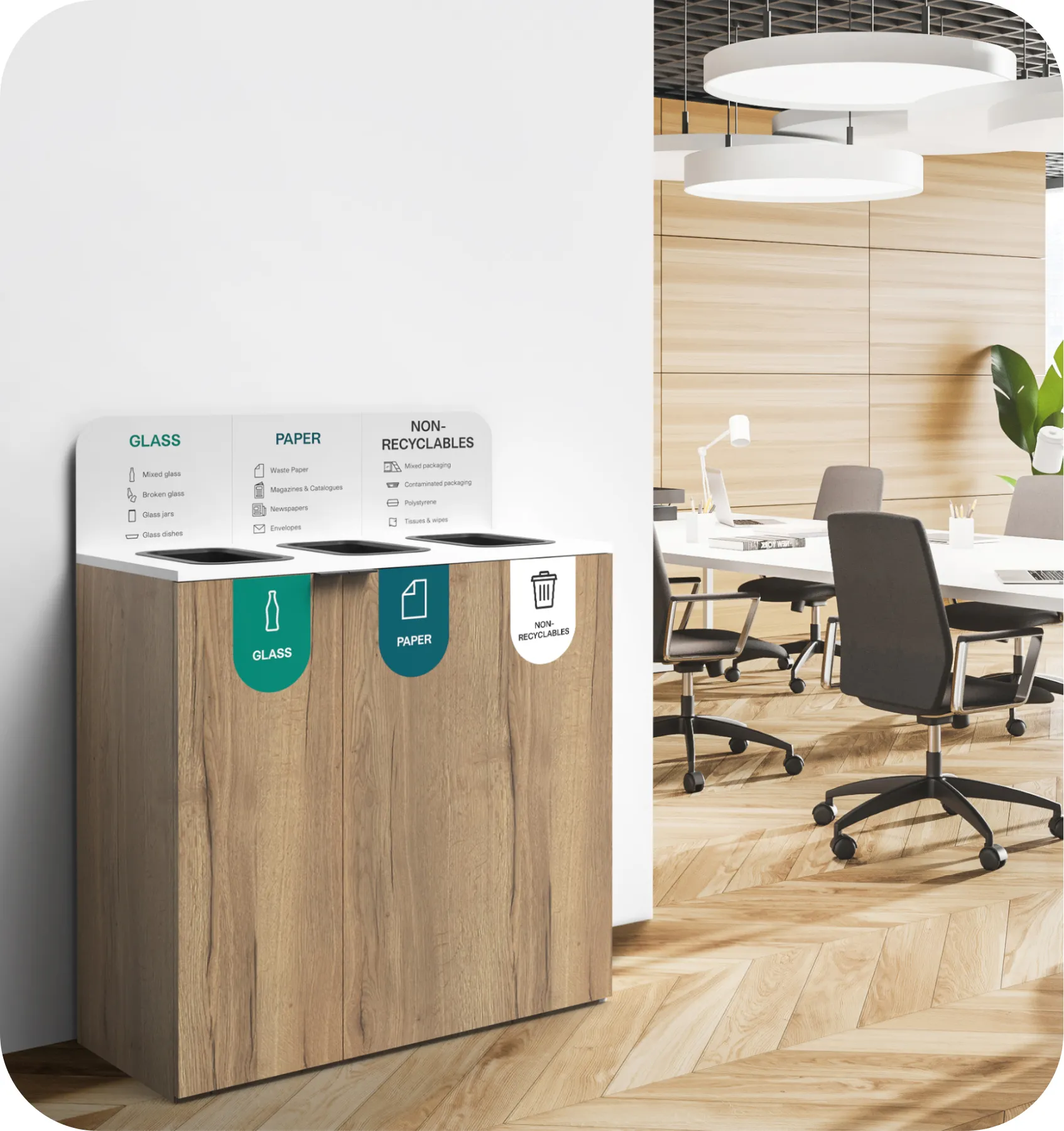 Made right here in Britain from sustainably sourced, FSC-approved wood, they look more like sleek office furniture than they do a traditional rubbish bin. Plus, you can fully customise your station to suit your organisation’s needs. With tailored waste streams, colours, graphics and finishes, you’ll enjoy a clean aesthetic that fits seamlessly into your workspace.