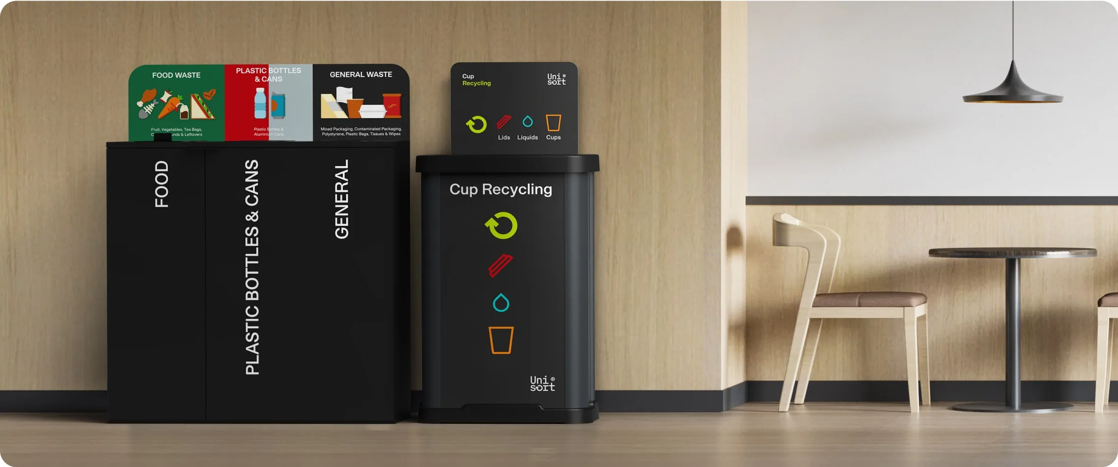 See why 1,700+ organisations (in fact 40% of FTSE100 list) have used Unisan to boost recycling rates, slash general waste, and become industry leaders in the race to net zero – without confusing signs, unsightly bins, or contaminated waste costing you twice as much!
